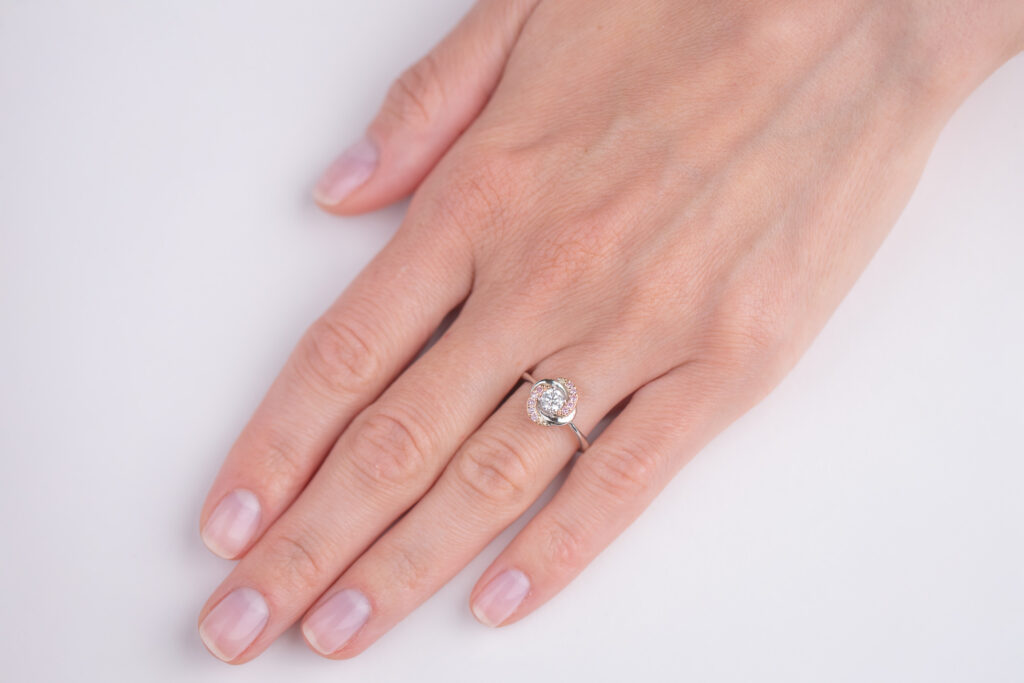 zlatý prsten s diamantem 0.34ct D/VVS2 s GIA certifikátem a růžovými diamanty Argyle 0.10ct