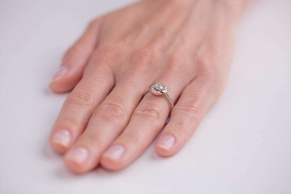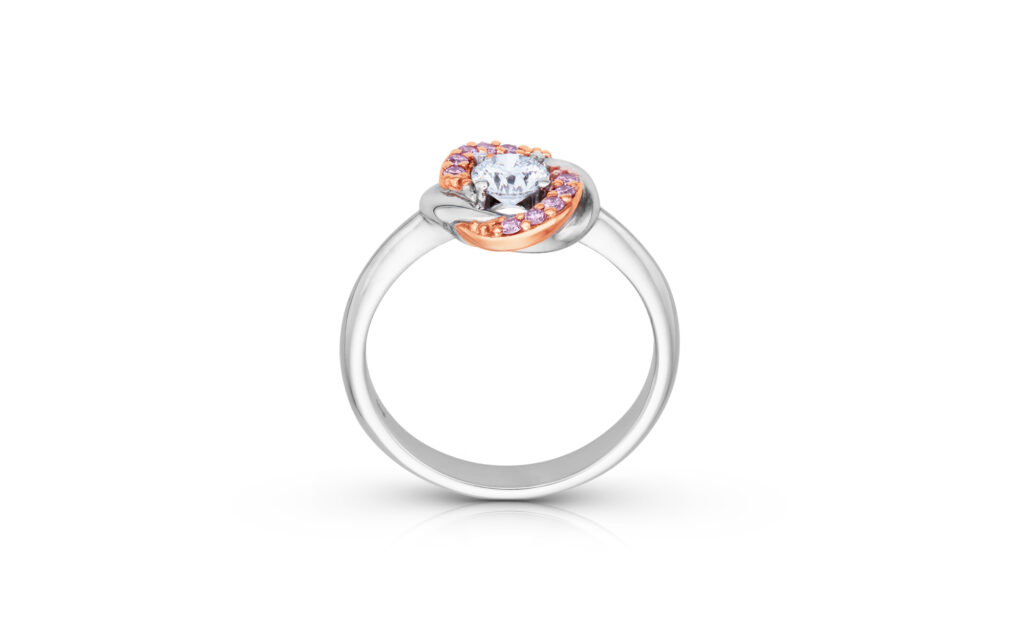 Prsten s růžovými diamanty Argyle v symbolice propojení.