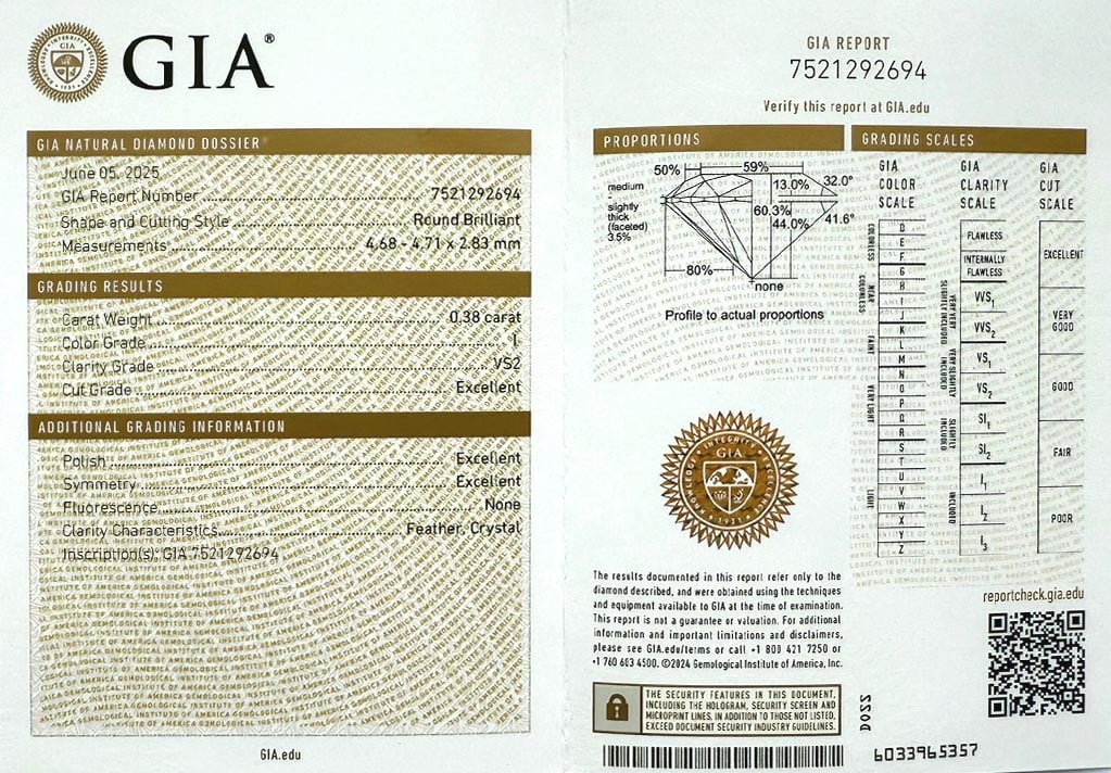 byl založen v roce 1931 a patří k absolutní špičce mezi gemologickými laboratořemi po celém světě a dodržuje pravidla stanovená Diamond High Council v plném rozsahu. Všechny diamanty na stránkách VVDiamonds opatřeny certifikátem GIA, lze verifikovat na stránkách GIA. Většina diamantů je laserově číslována pro větší bezpečnost obchodu.
