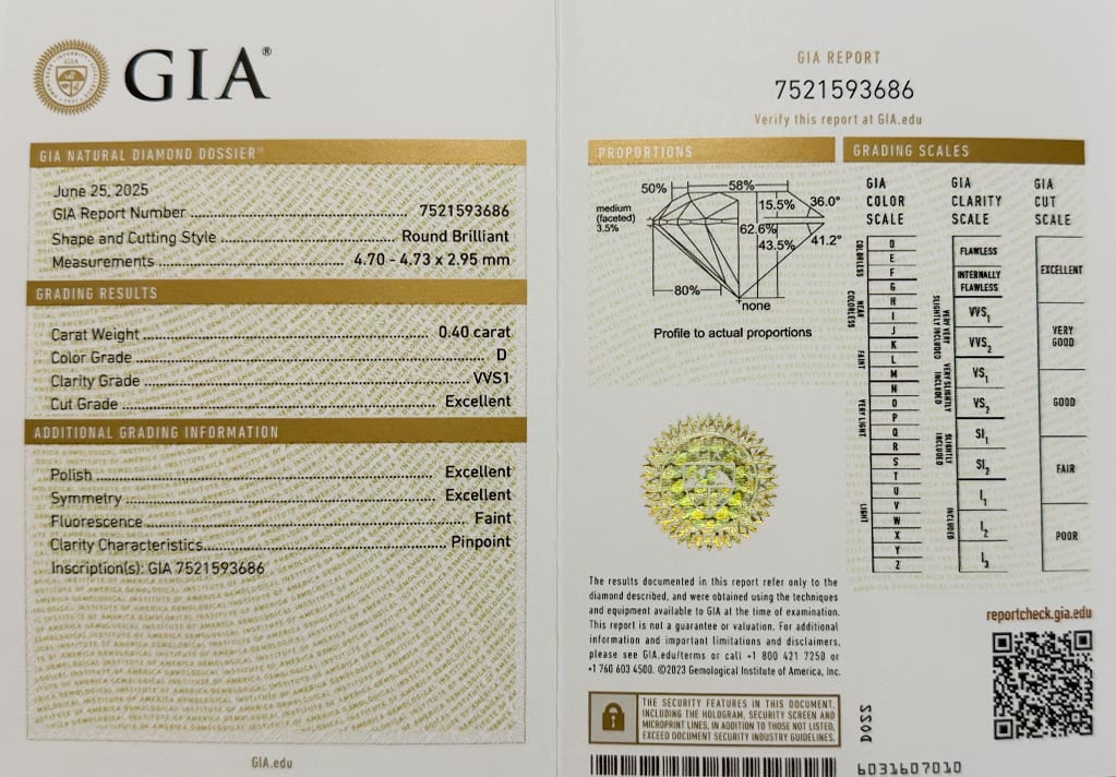 zlatý prsten s diamantem 0.40ct D/VVS1 s GIA certifikátem
