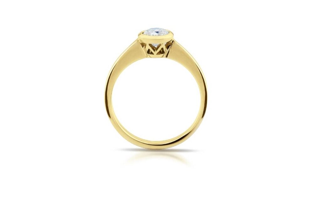 Velmi tradiční model diamantového prstenu, jenž vsází na krásu a eleganci jednoduchých, nerušených tvarů. Výraznou dominantou šperku je koruna prstenu, v níž je drahokam osazen tzv. lunetovým stylem, kdy malou část hrany diamantu skrývá po jeho celém obvodu zlatý plíšek. Tento způsob osazení drahokamu patří obecně mezi nejbezpečnější formy, které jsou mezi klenotnickými technikami k dispozici.