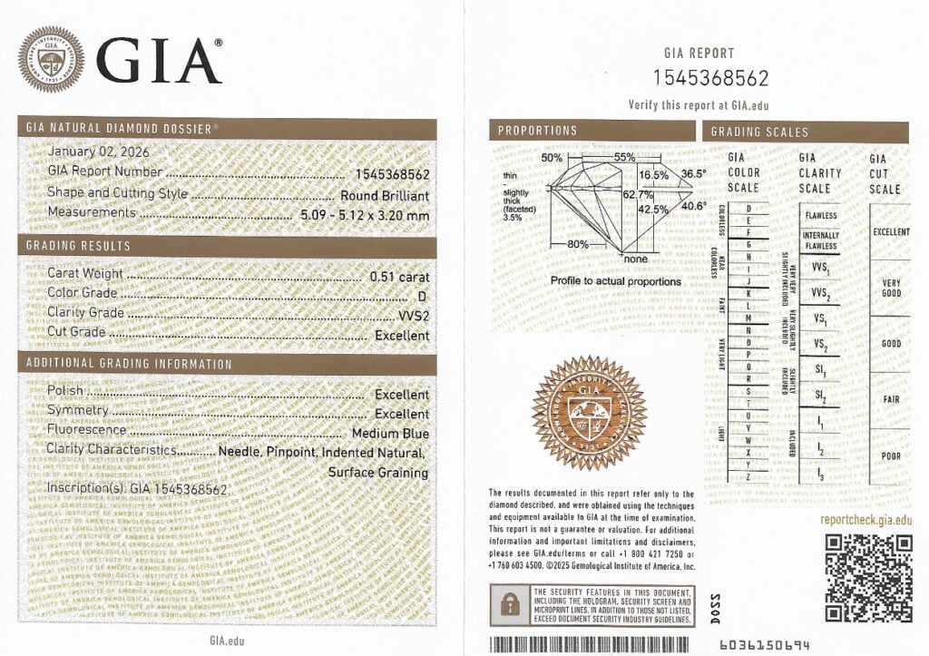 byl založen v roce 1931 a patří k absolutní špičce mezi gemologickými laboratořemi po celém světě a dodržuje pravidla stanovená Diamond High Council v plném rozsahu. Všechny diamanty na stránkách VVDiamonds opatřeny certifikátem GIA, lze verifikovat na stránkách GIA. Většina diamantů je laserově číslována pro větší bezpečnost obchodu.