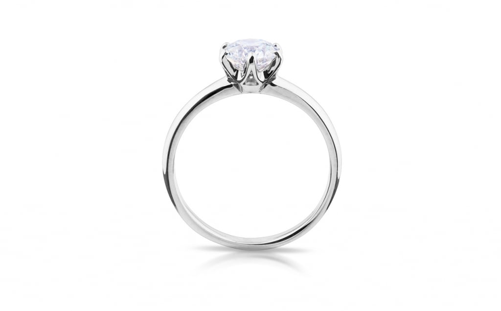 Největší ikona mezi zásnubními diamantovými prsteny. Model VVDiamonds 29 nabízí nerušený, a tedy i velmi elegantní vzhled s nepřehlédnutelnou korunkou tvořenou šesti decentními krapnami, které poskytují osazenému diamantu nejen bezpečí, ale také ideální výšku osazení drahokamu nad samotnou obroučkou šperku.