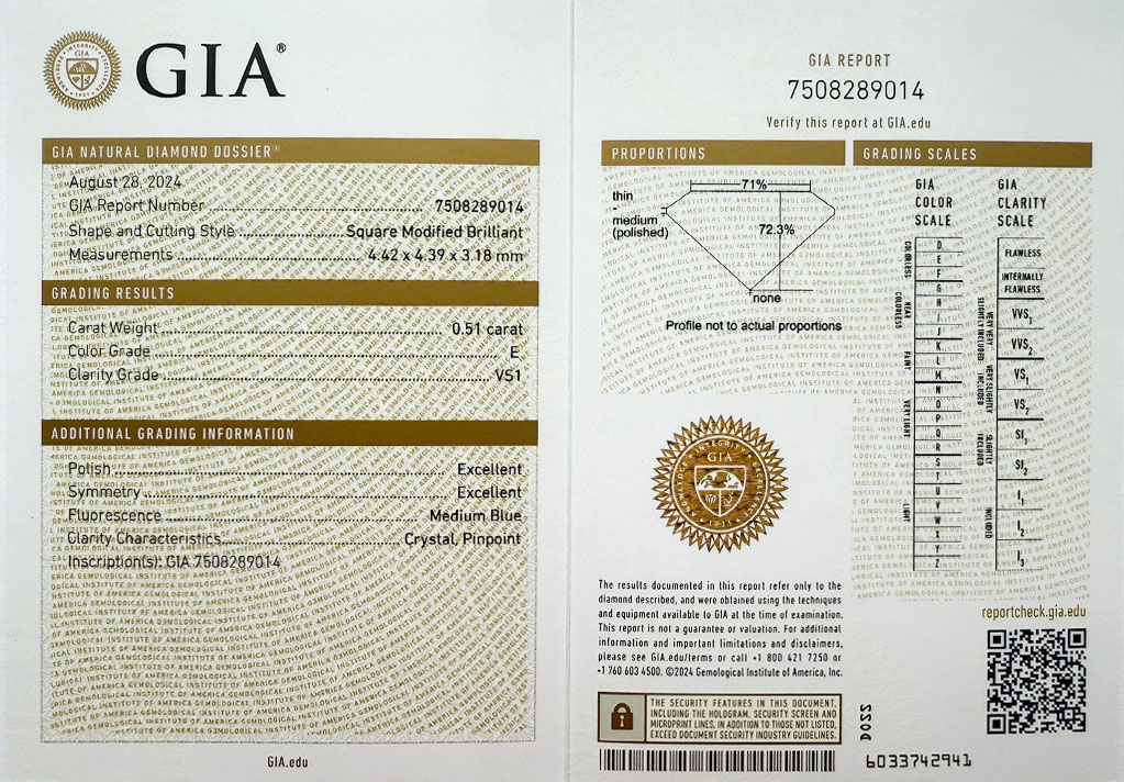 byl založen v roce 1931 a patří k absolutní špičce mezi gemologickými laboratořemi po celém světě a dodržuje pravidla stanovená Diamond High Council v plném rozsahu. Všechny diamanty na stránkách VVDiamonds opatřeny certifikátem GIA, lze verifikovat na stránkách GIA. Většina diamantů je laserově číslována pro větší bezpečnost obchodu.