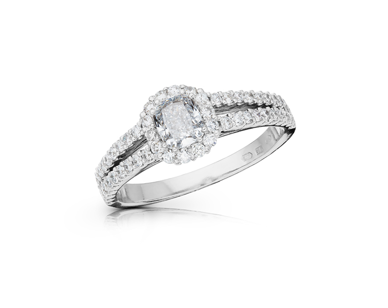 Prsten je zhotoven ve 14k bílém zlatě a osazen 54ks menších diamantů o celkové hmotnosti 0.44ct.
