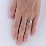Velmi nápadný diamantový prsten sestavený ze dvou protilehlých symetrických obrouček, které ve svém středu elegantně svírají usazený diamant. Ten je uchycen v jednoduchém lůžku tvořeném ze čtyř jemných krapen, jež nenarušují čistotu celého šperku. Vzhledem k typu obroučky je možné tento prstenu použít pro mnohé příležitosti, a to i za použití diamantů z nižších hmotnostních kategorií.