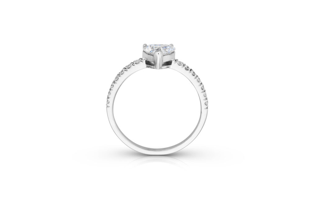 Šperk byl ručně vyroben ze 14k bílého zlata v pražském ateliéru a je osazen přírodním diamantem opatřeným mezinárodně uznávaným certifikátem gemologické laboratoře GIA.
